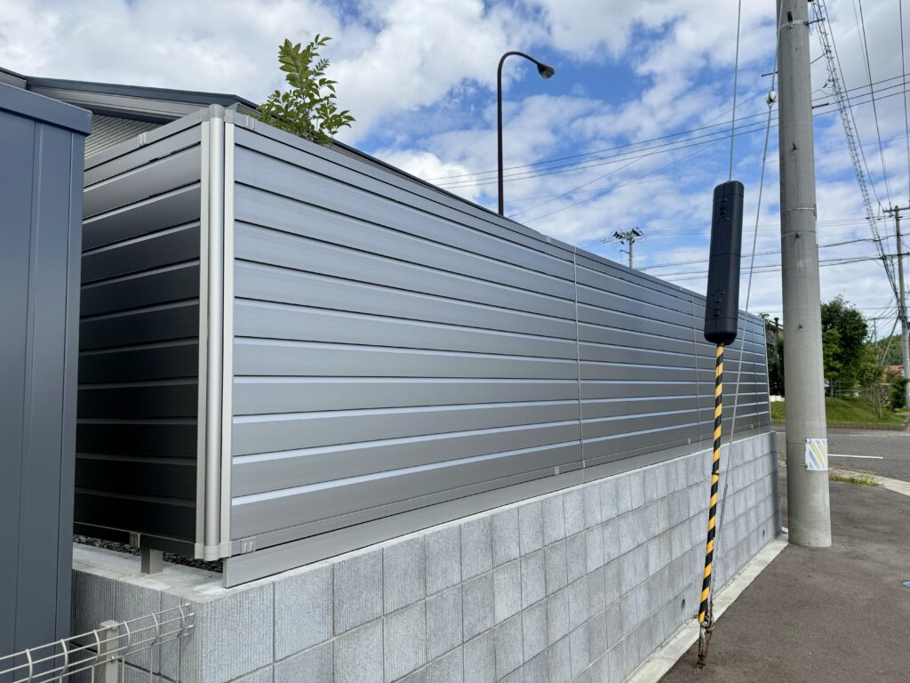 正面だけでなく、横目隠しにもなるこちらのフェンスはお家を囲う様に施工いたしました!